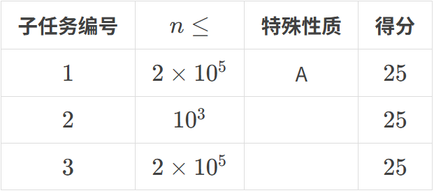 - 特殊性质 A:$\forall 1\le i\lt n$,$a_i\lt a_{i+1}$。